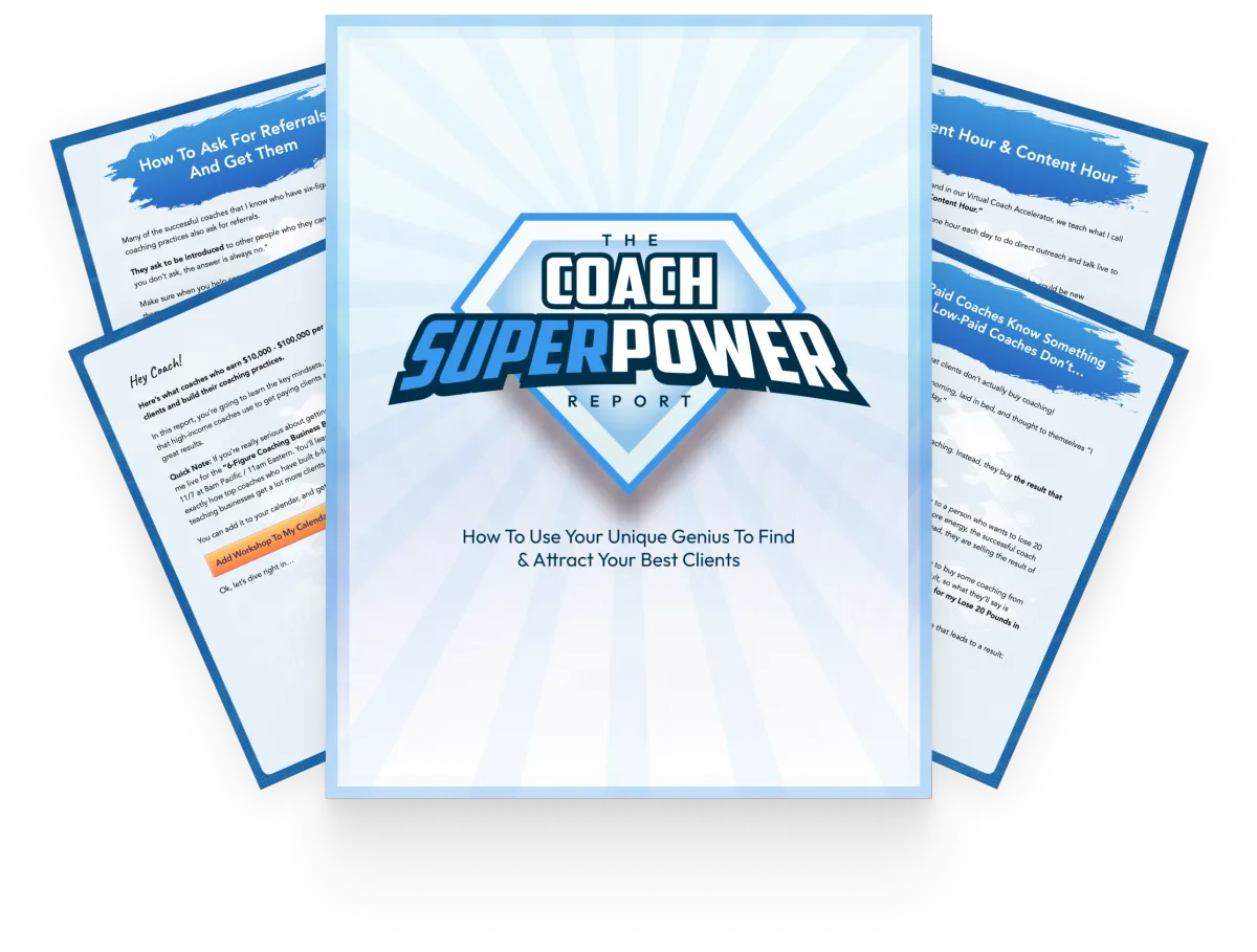 It takes just 2-3 minutes to answer 12 interesting questions and discover your “Coach Superpower.” You'll receive a custom, in-depth report in which you'll: learn new things about yourself & your unique genius, identify your “shadow” areas to improve & develop, and find out who your best clients are & how to attract them.